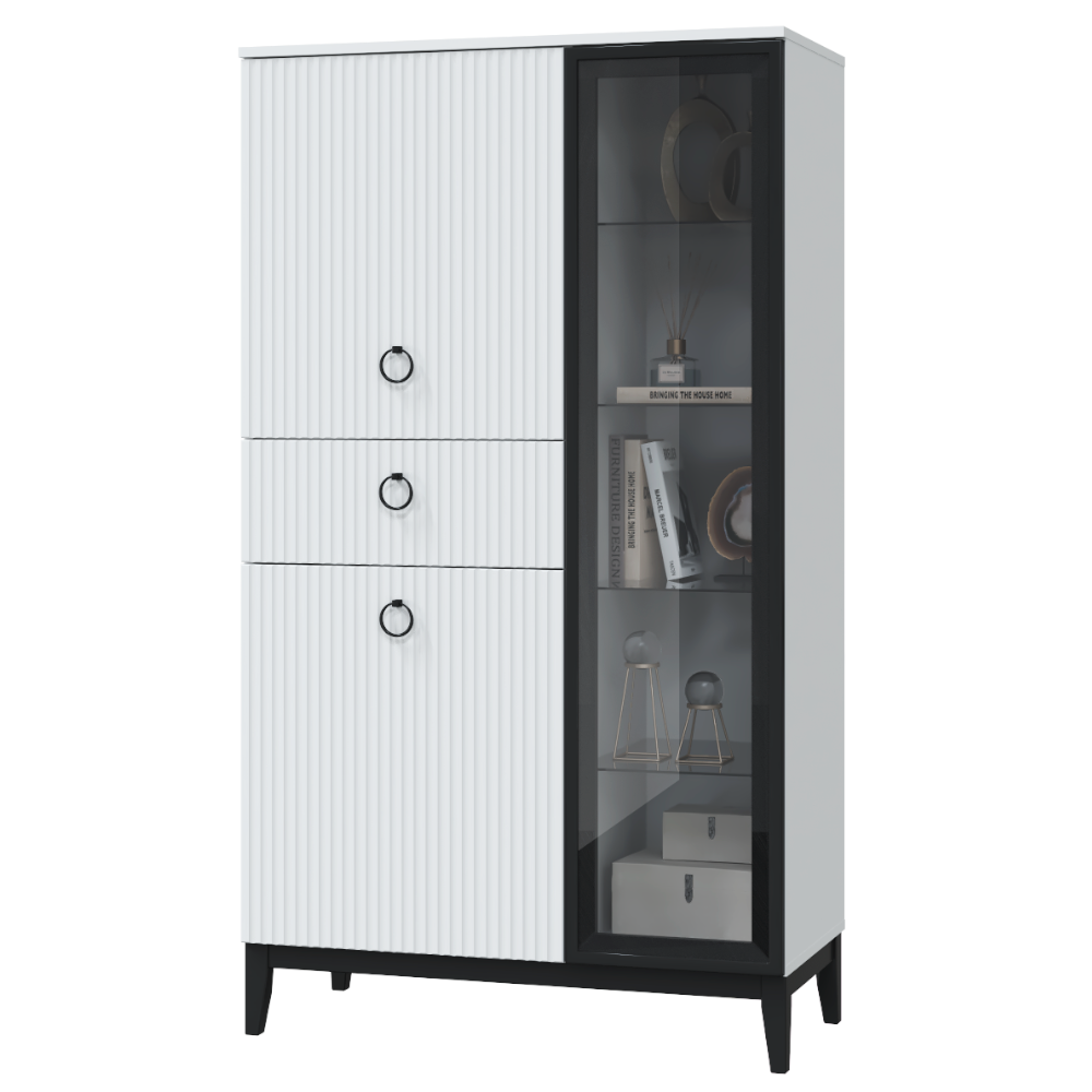- Стеклянные вставки толщиной 4 мм обеспечивают полную обозримость хранимых предметов, сохраняя их сохранность и привлекательный внешний вид.