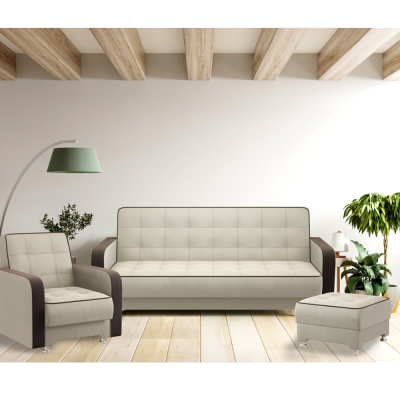 - Дополнительные элементы: Встроенный ящик для хранения вещей в диване, позволяющий рационально использовать пространство.